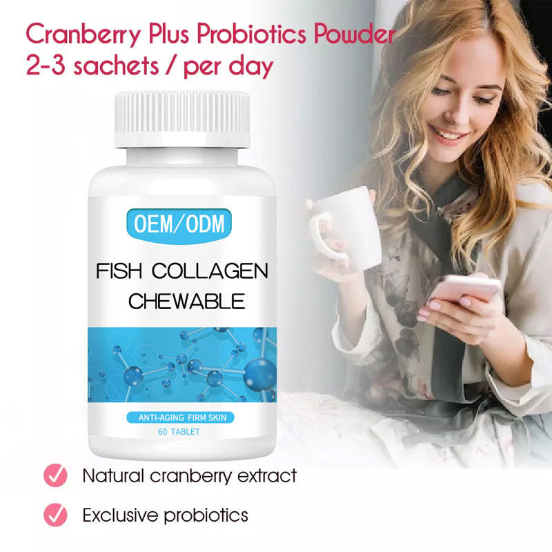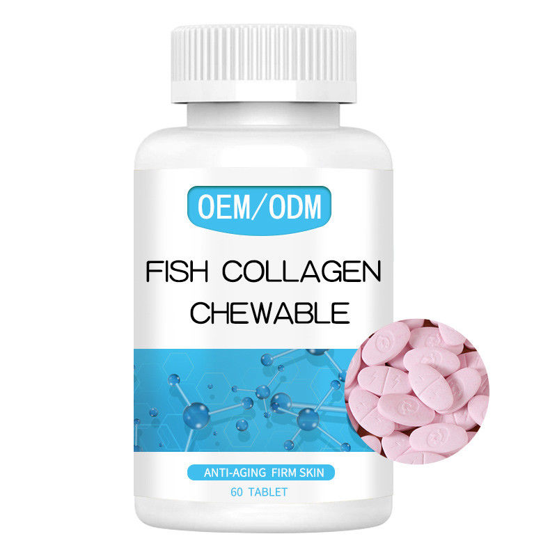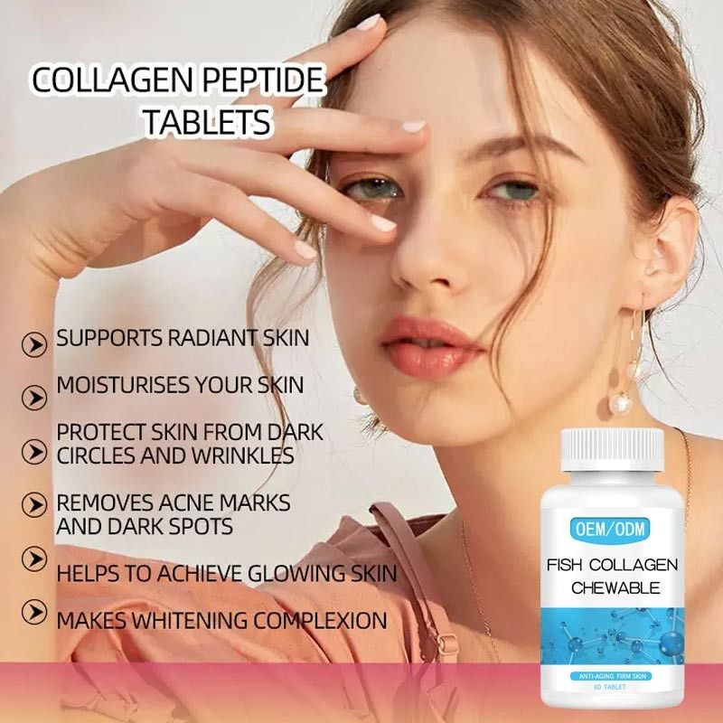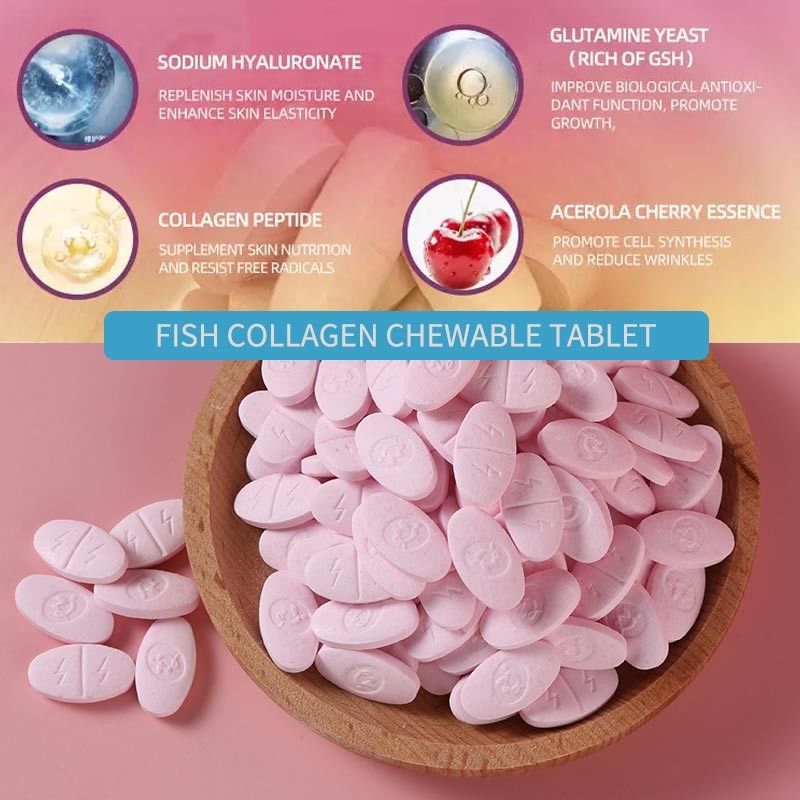 OEM Balık Kollajen Yaşlanma Karşıtı Çiğneme Tabletleri Cilt Beyazlatma Kapsülleri