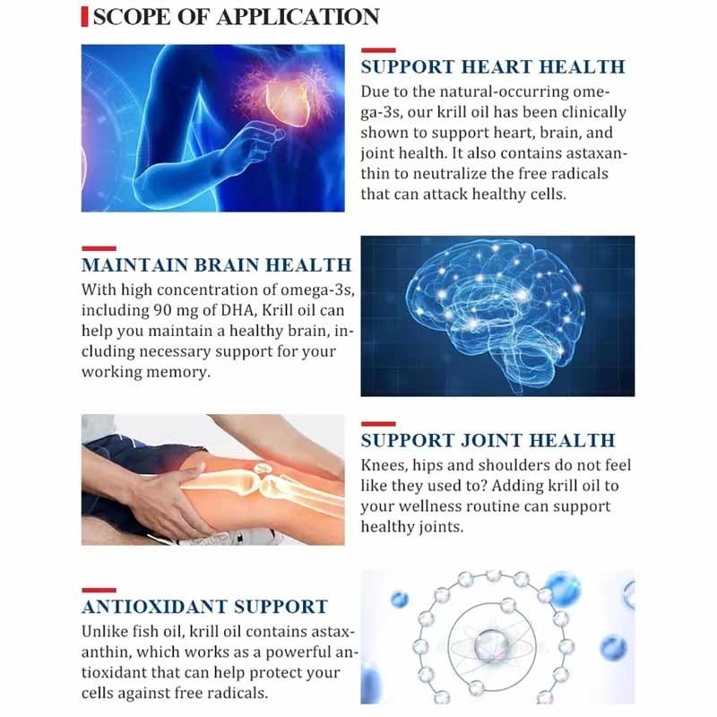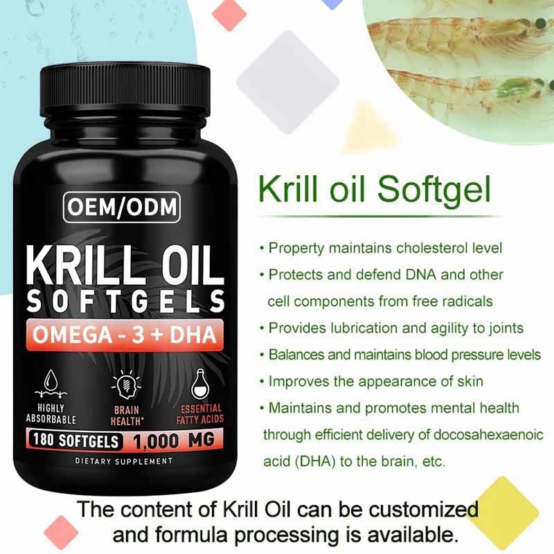 Krill Oil Omega 3 DHA Softgels Kalp Sağlığı İçin OEM Takviyeleri