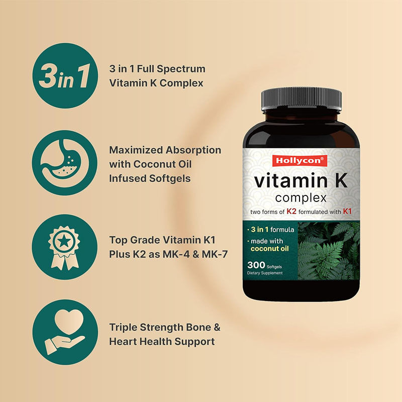 Her bir yumuşak jelihindistancevizi yağıK vitamininin yağda çözünür besinlerin emilimini iyileştirmek, en iyi emilimi sağlamak için.1500mcg K1(fitonadiyon),1,000mcg K2(MK4) ve100mcg K2 (MK7)Her porsiyonda, bu formül kalbinizi, kemiklerinizi ve eklemlerinizi etkili bir şekilde desteklemek için tüm K vitamini spektrumunu sağlar.