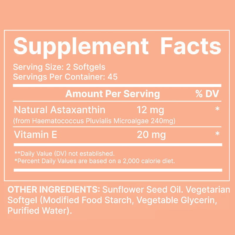 12 mg doğal astaxanthin + 20 mg E vitamini, 3 kat daha uzun koruma için lipit çözünür bir antioksidan ağı oluşturur.