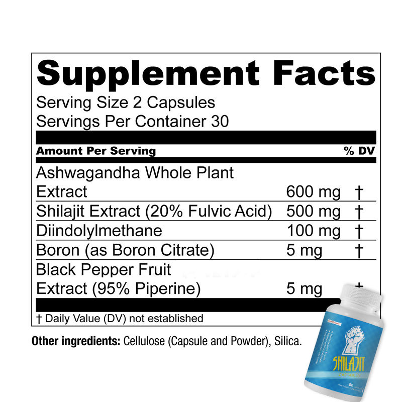 Gündelik Stres Azaltıcı ve Fiziksel Destek: Ashwagandha ve shilajit'in dahil edilmesi, egzersizleri ara sıra engelleyebilecek normal, günlük stresi azaltırken kas kütlesini desteklemeye yardımcı olur.*