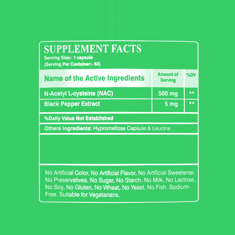 Siyah Biber Ekstresi ile geliştirilmiştir: NAC' nin emilimini optimize etmek için 5 mg Piperine ile formüle edilmiş, böylece her dozda maksimum fayda elde etmenizi sağlar.