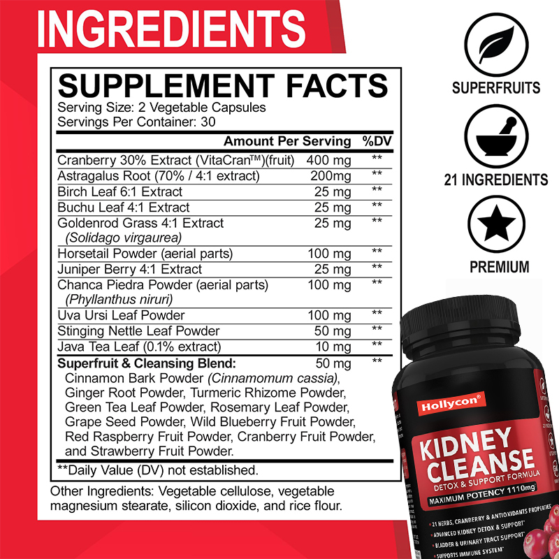 Hollycon'un doğal bitki özü formülü, uygun ve etkili mesane desteği ve böbrek sağlığı işlevi için birinci sınıf bir detoks sağlar.